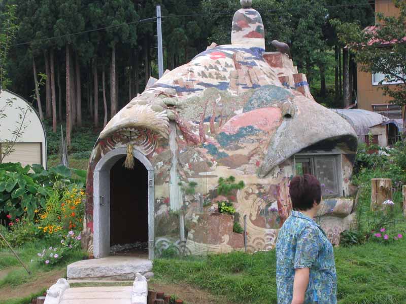 次は韓国のアーティストの作品(写真2)。建物丸ごと陶器。建物をその場所で成型して、直接覆い焼いてできた作品です。アーティストが何ヶ月もそこにいて、地元の人たちと一緒に火を守り、焼き上げた小屋です。とにかくかわいいです。訪れると、地元のおじいちゃんが、アーティストと火を囲んで飲み明かした思い出を語っていたりします。