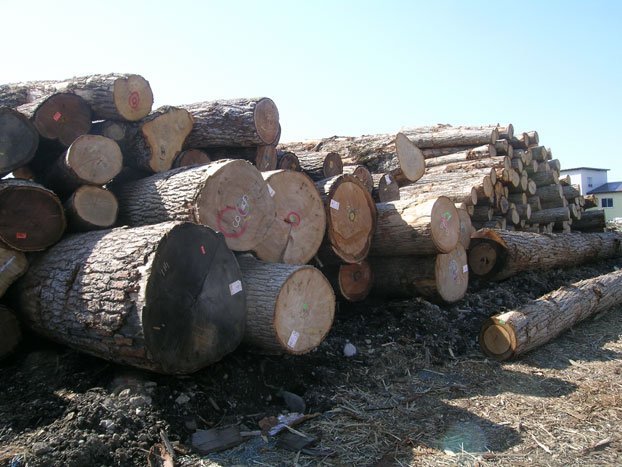 まず、そこで ずら〜〜〜〜っと並べられた原木(丸太)を下見します。